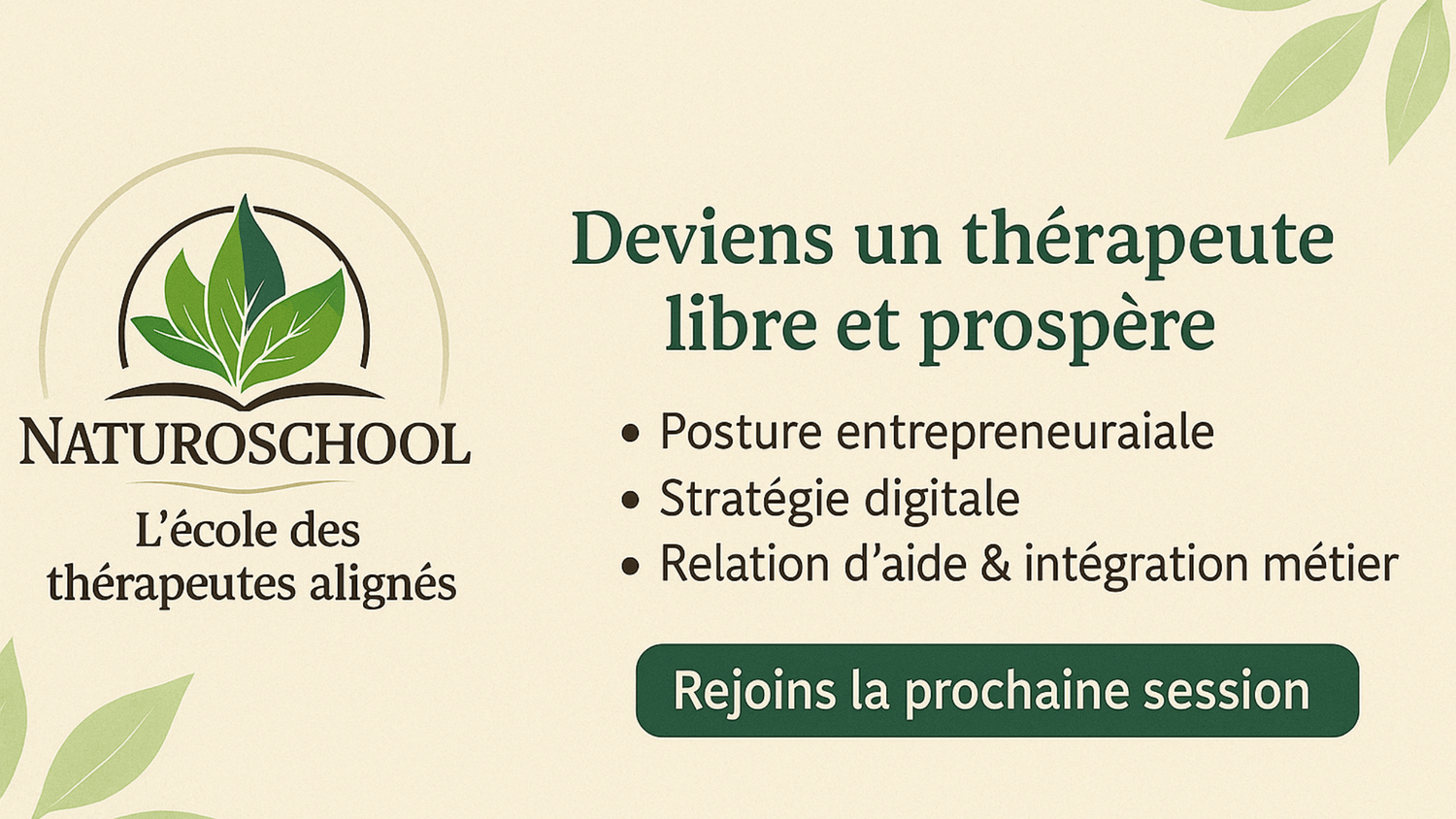 La NATUROSCHOOL t’aide à poser des bases claires, cohérentes et durables pour exercer sereinement.
